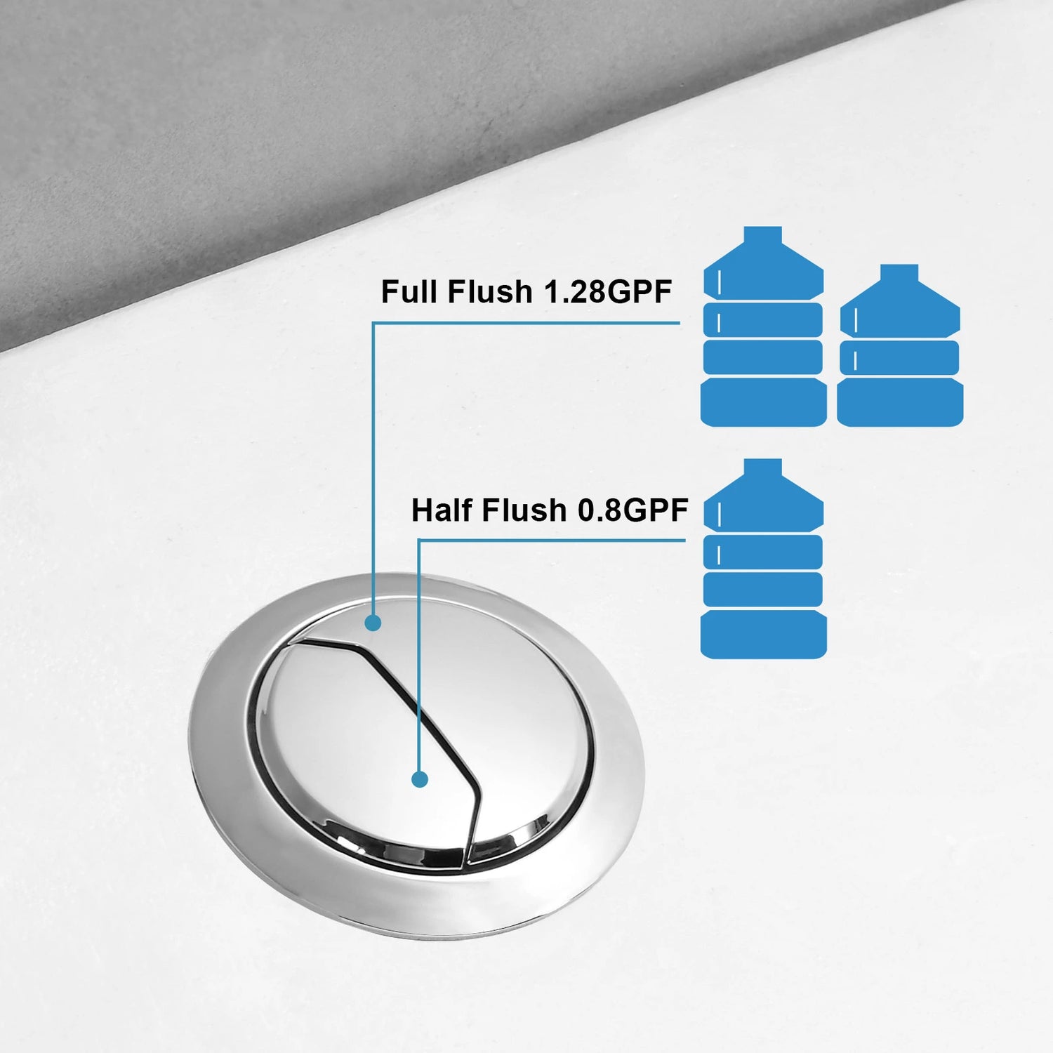 - Dual flush system (0.8/1.28 GPF) with WaterSense certification saves water while maintaining full flushing power.
