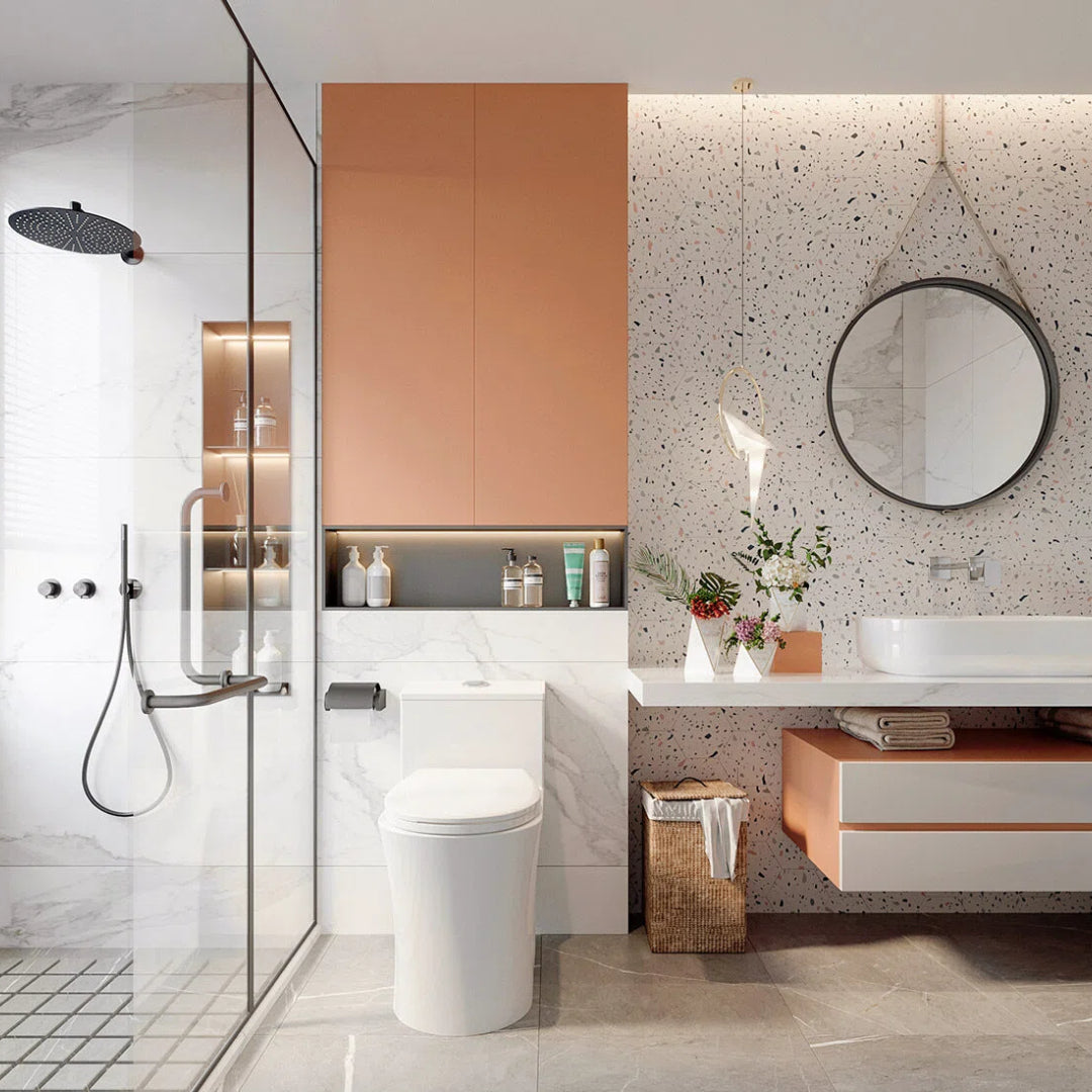 The one-piece streamlined design keeps your bathroom stylish and hygienic, eliminating hard-to-reach gaps for quick, stress-free cleaning.