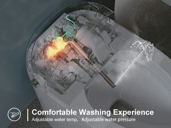 The tankless design of this smart toilet offers a sleek, modern aesthetic by eliminating the bulky water tank typically found in traditional toilets. This space-saving feature provides a clean, minimalist look while optimizing bathroom space.
