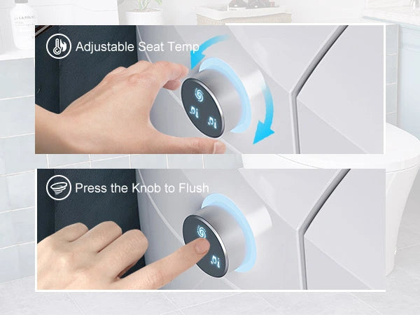 Easily accessible side buttons allow for quick adjustments to seat temperature and flush settings, putting comfort and control right at your fingertips. Effortlessly customize your experience with just a touch, enhancing convenience and comfort with every use.